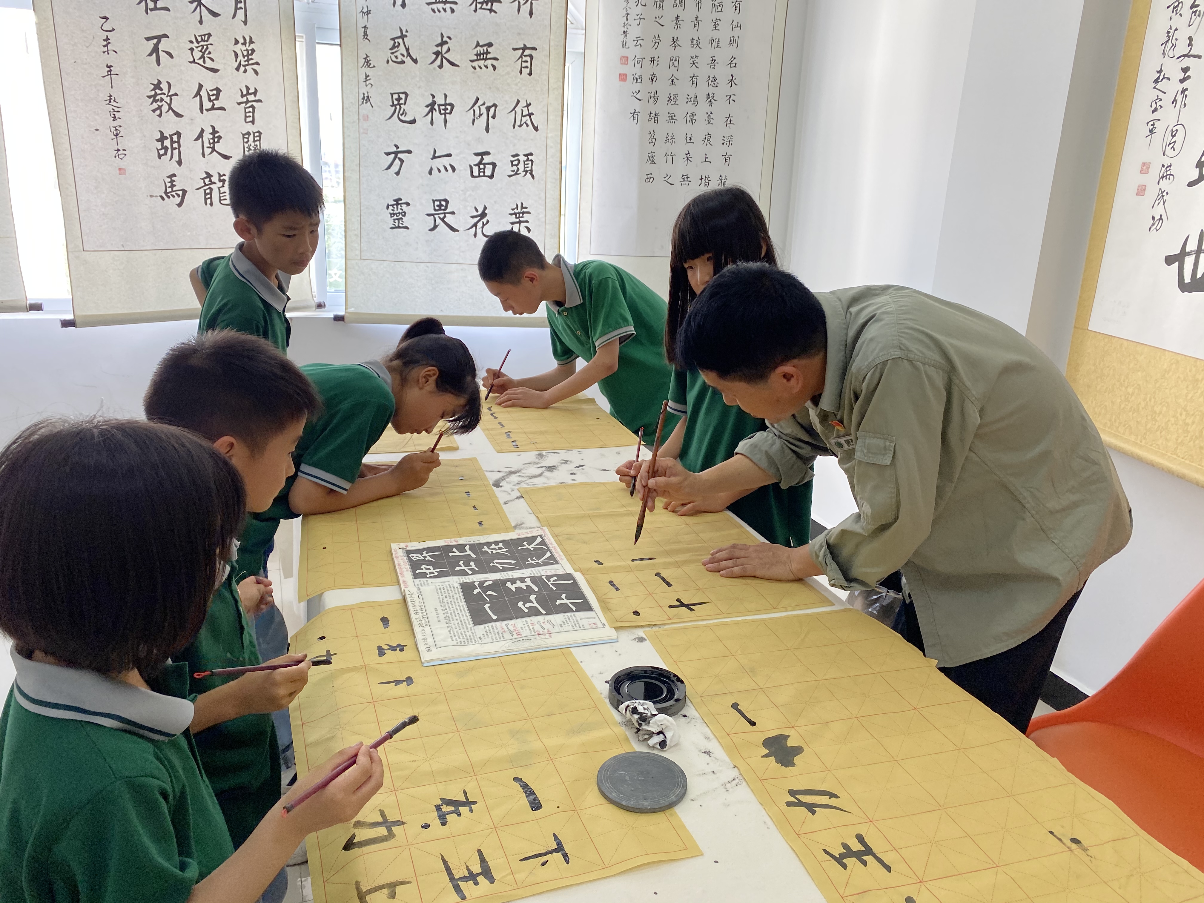 学书法技巧。镇书法协会会长罗仁杰在文化站书法绘画培训室内,向孩子们亲身示范两种毛笔握法,并教孩子们怎么选毛笔、选纸,怎么运笔、起笔,怎么描摹等知识,让孩子们学习书法技巧,感受书法写作之乐。