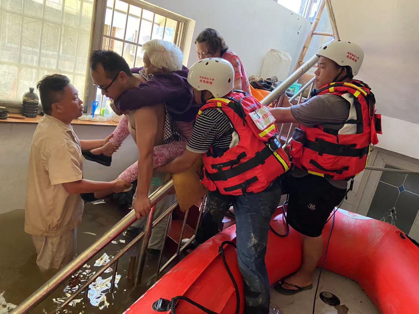 7月24日,救援队参与河南省新乡市卫河共产主义渠决口抢险,疏散群众,营救重伤人员,救援受伤群众。在形势严峻的新乡市牧野区王村镇寺庄顶村,队长张松率救援队从洪水中搜救转运被困群众。当天晚上8点,在中国红十字会优秀志愿者刘叙旭等队员努力下安全转运出最后一位98岁的老人。