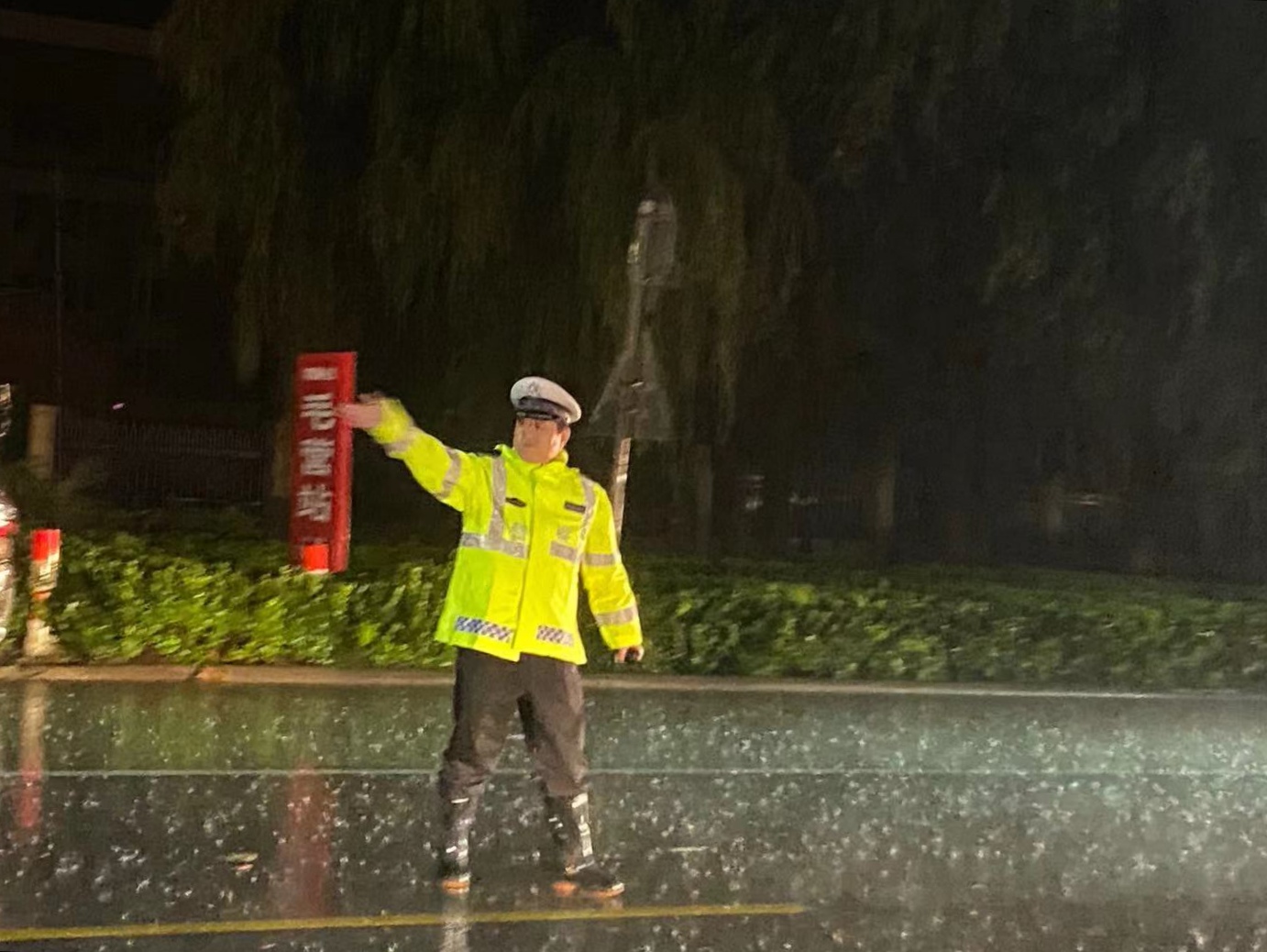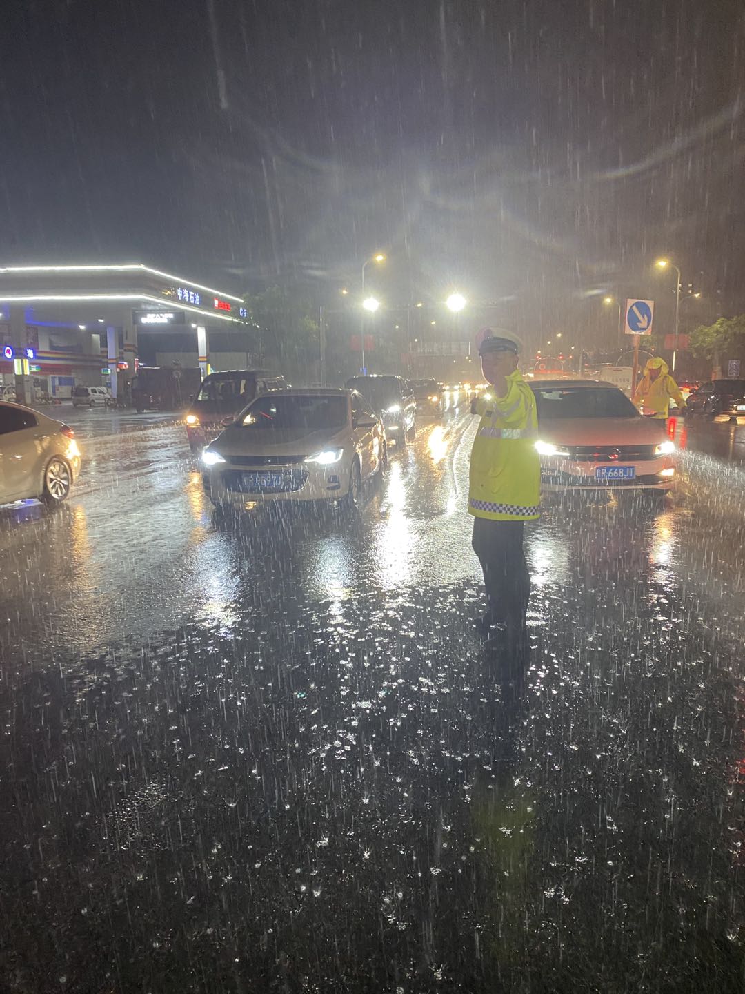 [我为群众办实事]大雨暴雨期间东明县公安局副局长朱卫东带领民辅警奋战一线指挥交通