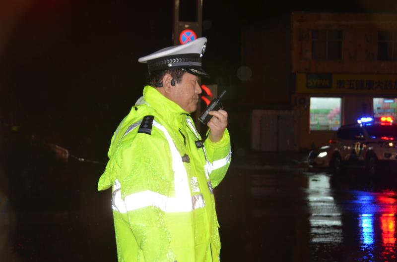 大雨暴雨期间东明县公安局副局长朱卫东带领民辅警奋战一线指挥交通