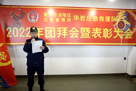 2023年1月8日,重庆市涪陵区应急管理局华岩救援队2022年团拜会暨表彰大会在黄旗大碗饭(救援队指挥中心)圆满落幕。大会由救援队组织委员廖川主持。
