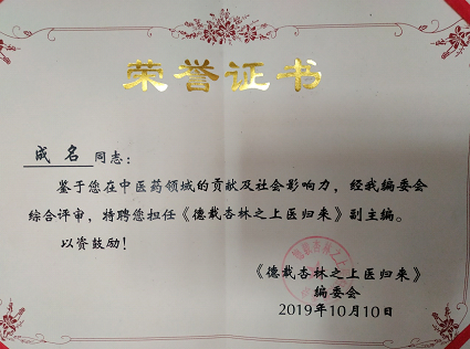 成名先生的长子成家泰,从小就跟随父亲成名学习中医,耳濡目染加上父亲的悉心指点,可谓得到了家传精髓。成名先生经常叮嘱儿子:中医乃济世救人,不可贪图名利。医是我们的道,道不可离德。专心习道修德,才能走的远、站的高。医者不仅要治已病之躯,还要为人们传播保持健康身体的知识,让人们都有保持健康的理念并付诸行动。这条路很长,光靠我们是不够的,需要很多医者,甚至很多代人的心血去完成,你要从年轻就立下远大的志向、搭建宽广的平台,为健康中国的实现而努力奋斗。