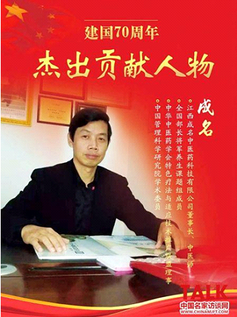 成名,湖北省阳新县人,中医世家传承人,从事中医临证三十余年,擅长纯中医药调理心脑血管病、肺病、肝病、胃病、妇科病、不孕不育,肾病,皮肤病、风湿、颈腰椎病等。健康宣传大使、科普专家、江西成名中医药科技有限公司创始人。中国专汇网专家百科入驻专家、中国影响力人物数据库专家、大国医药智库专家。获得2020年度风云榜最具影响力人物、岐黄薪火传承人、世界百名优秀中医传承人、国医文化传承人、医学科研成果奖、中俄传统医学交流项目高水平专业成就奖等荣誉。兼职中国生命关怀协会健康中国发展工作委员会副主任,中国管理科学研究院学术委员、中华中医药学会特色疗法与适宜技术推广联盟理事、中医祖庭医圣仲景智库专家委员、大国医商学院客座教授、全国部长将军养生课题组成员、中国公益人物组织特邀顾问等。成就录入《国医年鉴》,巜中华中医疑难病名医榜》《杏林春暖之特色中医》《中华百年人物名典》《世界优秀医学专家》等三十多种国家级国际级大辞典。同时分别兼任国家级文献《德载杏林之上医归来》《杏林春暖之特色中医》《走向世界的中华名家》《中华医药卫生杂志·名医风采专刊》副主编、特邀编委、编委、名誉编委会主任等职务。