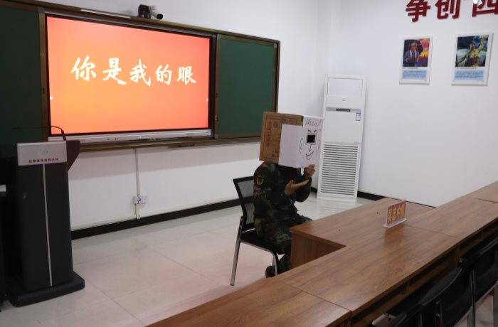 这是发生在武警宁夏总队吴忠支队某中队文体活动的一幕,中队开展名为“你是我的眼”的活动,中队战士带上特制的“头盔”,挡住面部特征,仅仅留出眼睛部位,让在座人员猜测上场“嘉宾”究竟姓谁名谁,场中官兵反应热烈,笑语不断,他们仅仅根据入场走姿、衔级、配饰、坐姿等有限的细节猜测,中队下士彭艺一路高歌凯进,连续说出多名上场“嘉宾”的名字。为增大难度,古灵精怪的候场人员出谋划策,交换领章、配饰,改变步幅和行为动作,甚至将整个脑袋都层层包裹,然而这也阻止不了场下官兵的火眼金睛,敏锐的直觉和朝夕相处的陪伴使他们每个人都心灵相通。