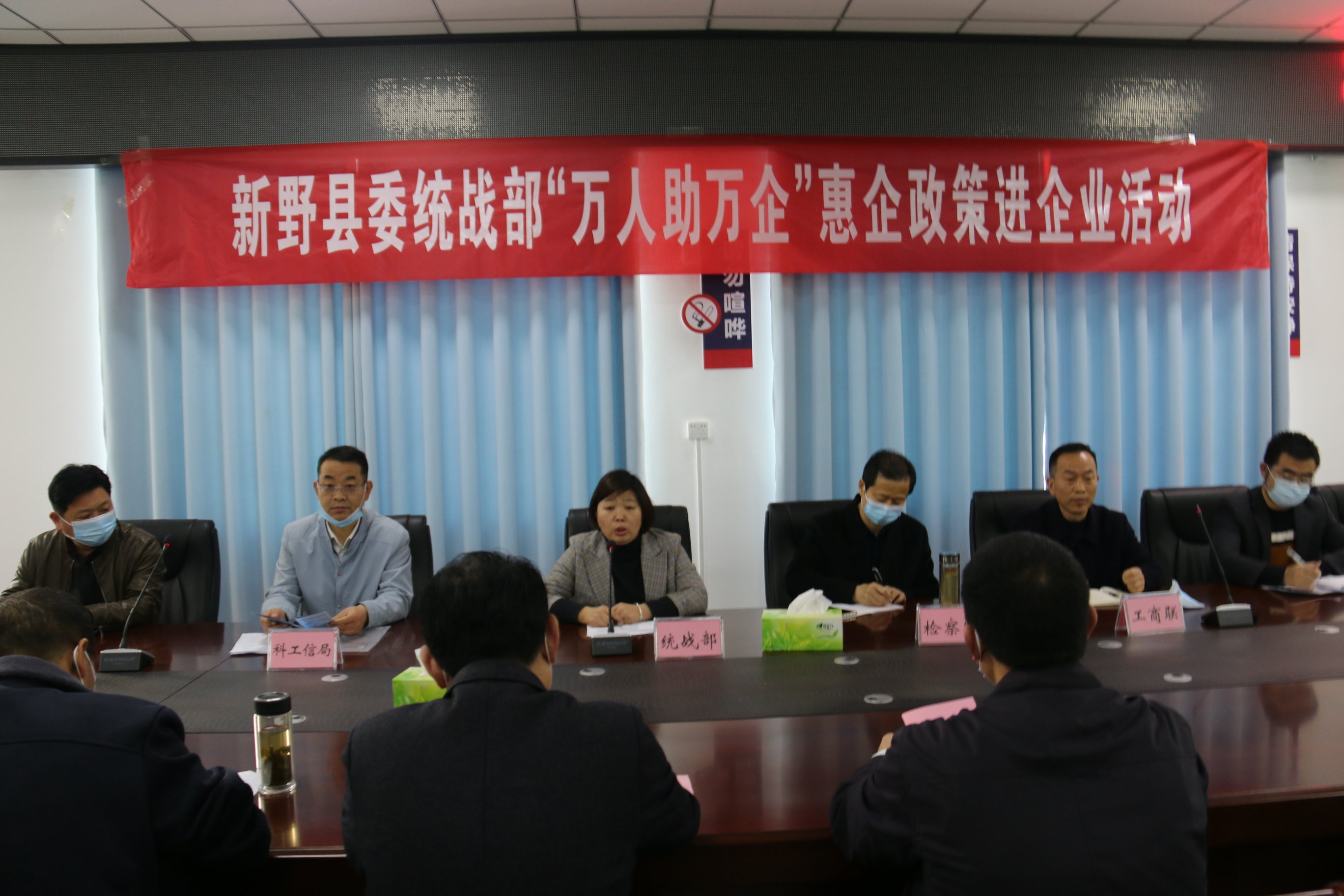 3月16日,河南省新野县委统战部联合县检察院、县工商联、县农行、县农商银行、县科工信局、县商务局等部门深入民营企业,发放惠企护企小册子,并就法治护航企业健康发展、信贷投放类型及程序、外贸出口政策及奖补措施等方面,与企业负责人进行面对面沟通交流,聆听企业发展中遇到的问题和难点,切实为企业排忧解难,让企业树立发展信心,为企业经济发展保驾护航,推动企业快速健康发展。