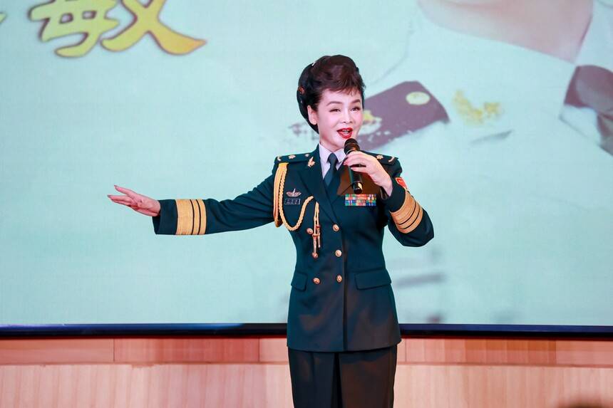来自原空军政治部文工团的女高音、著名军旅歌唱家接厚芳为大家演唱了《看见你们格外亲》。