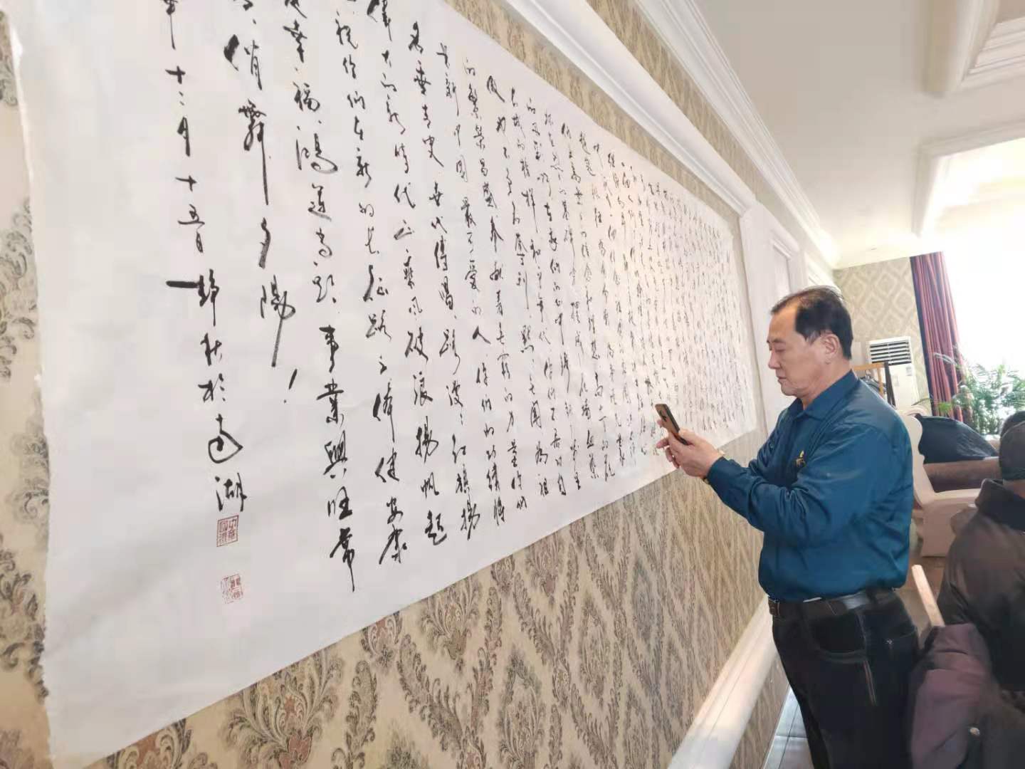 并亲自全程参加了活动。还现场朗诵书法文艺作品散文诗。使会场宴会气氛达到了高潮,