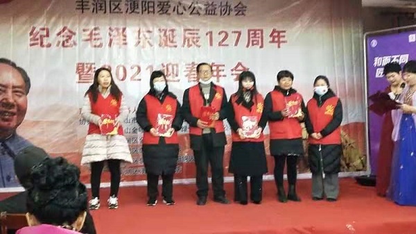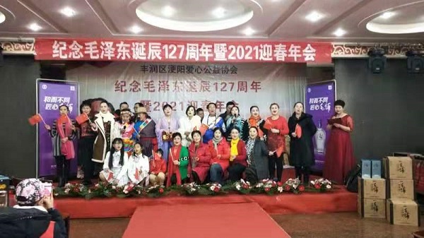 中国三农电视台(唐山丰润讯)军旅作家记者:付文龙唐山市丰润区浭阳爱心公益协会一一纪念伟人领袖毛泽东诞辰127周年暨公益迎新春年会,