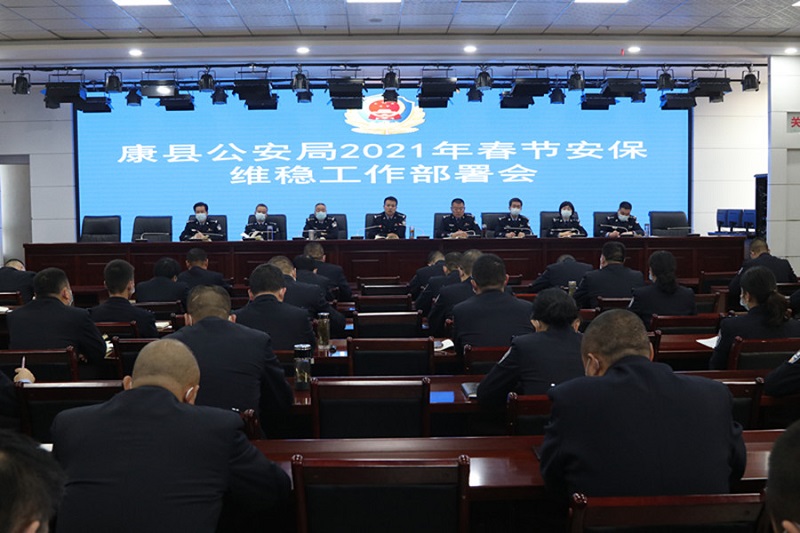 为确保全县人民欢度新春佳节,康县公安局党委高度重视,提前召开专题会议,安排部署2021年春节安保维稳工作,春节期间严格落实领导带班、24小时值班备勤等制度,严防发生各类重大安全事故,确保全县的社会治安稳定。
