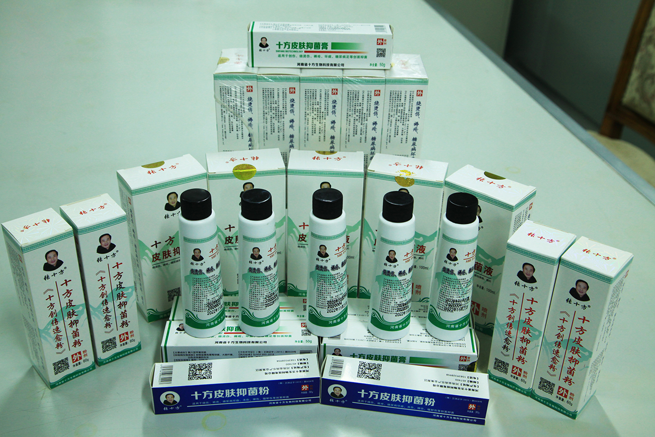 和蔼的张十方院长热情地接待了我们,寒暄一番后说:“像这样紧张地接待患者和出诊、探访慰问病重患者是正常的业务范围。一次,我和苏艳丽大夫驱车前往南乐公安局家属院,看望一位城关镇年老80岁的褥疮患者王相淑老人。患者的儿媳姚占红向我们介绍说,她的婆婆不能自理已卧床七年,身上多处患有褥疮,而老人的右脚指体伤口已糜烂。详细了解病情后,我用自研的药粉和药液,为患者进行义务治疗,包扎完毕后,又留下了一些药品,并叮嘱家属每隔3天按时喷药即可,脚上腐烂伤口慢慢就会好了,同时还安慰病患者加强营养安心治疗,祝早日康复。”