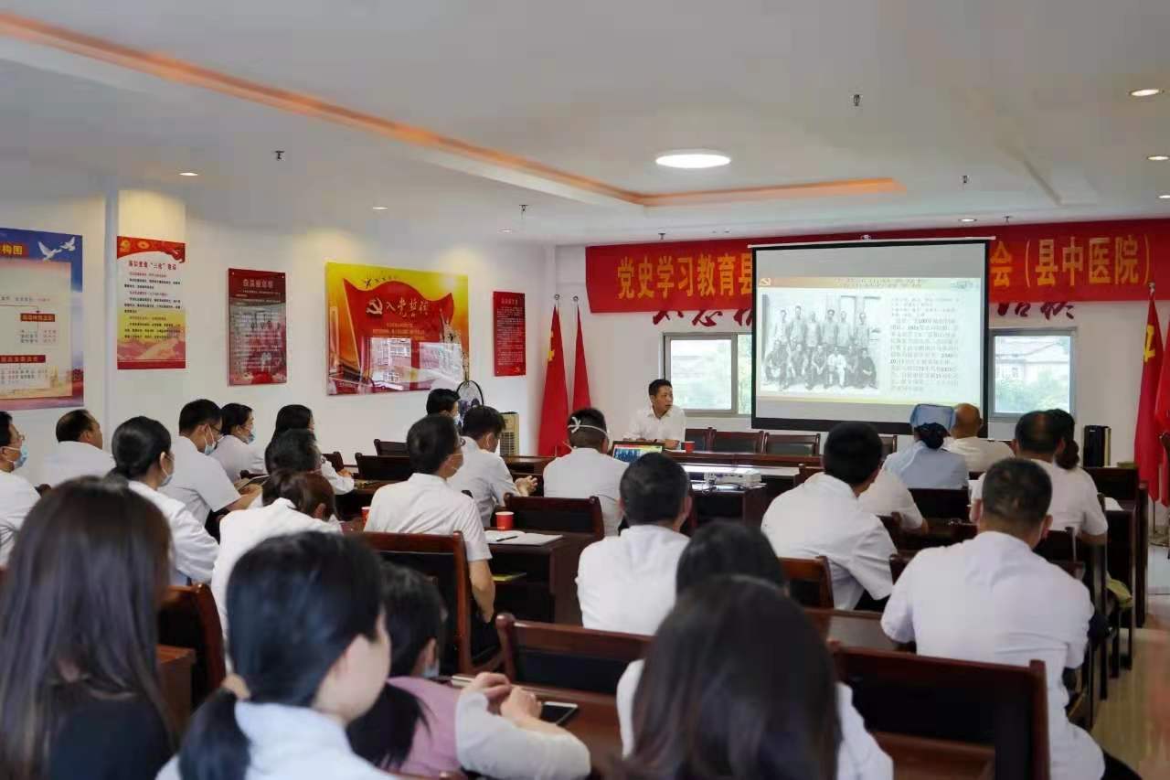 三农电视网江西讯(王义东 钱雪) 为深入学习贯彻习近平总书记在党史学习教育动员大会上的重要讲话精神,扎实开展党史学习教育,5月28日下午,江西省玉山县中医院在四楼党员活动室召开5月份主题党日活动,会议邀请玉山县卫健委副主任郑为贤来玉山县中医院授党课。该院党政领导班子、全体党员及中层干部参加会议。会议由该院党委书记陈斌主持。