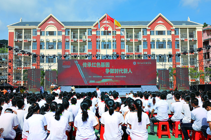 漳州艺术实验学校校长陈志材介绍,“让青春在党旗下飞扬”树立同学们正确的人生观、世界观。学校将红心向党的种子,播种在每一个孩子的心田,让孩子们在童心飞扬的美好时代,快乐地绽放、成长。(图文:杜静伟、彭嘉伟)