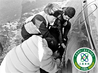 胡大鹏在执勤中帮助遇到困难的司机