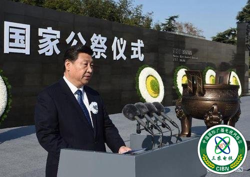 2014年12月13日上午,中共中央、全国人大常委会、国务院、全国政协、中央军委在南京隆重举行南京大屠杀死难者国家公祭仪式。中共中央总书记、国家主席、中央军委主席习近平出席并发表重要讲话。新华社记者 李学仁 摄