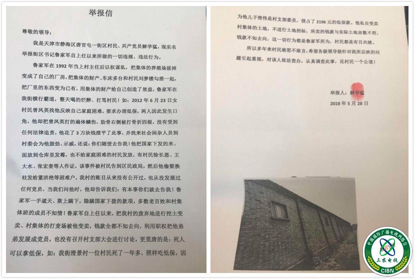 天津市静海区唐官屯镇一街区村民解玉江的4.8亩地被村委会以租代征50年,村民不从,手持土地证向当地各级政府索要说法至今未果,却引来众多村民状告该村村支书鲁家军在任职期间的违规违法行为。本社曾以《打人村支书仍然能当选村官》为题公开报道,数月过去至今无有任何处理信息。