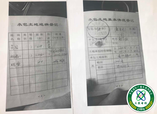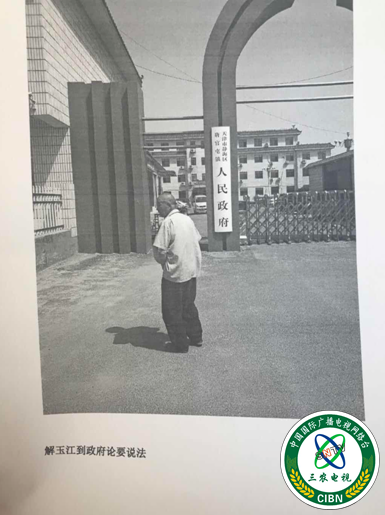 图:解玉江手持承包土地证到各级部门上访。