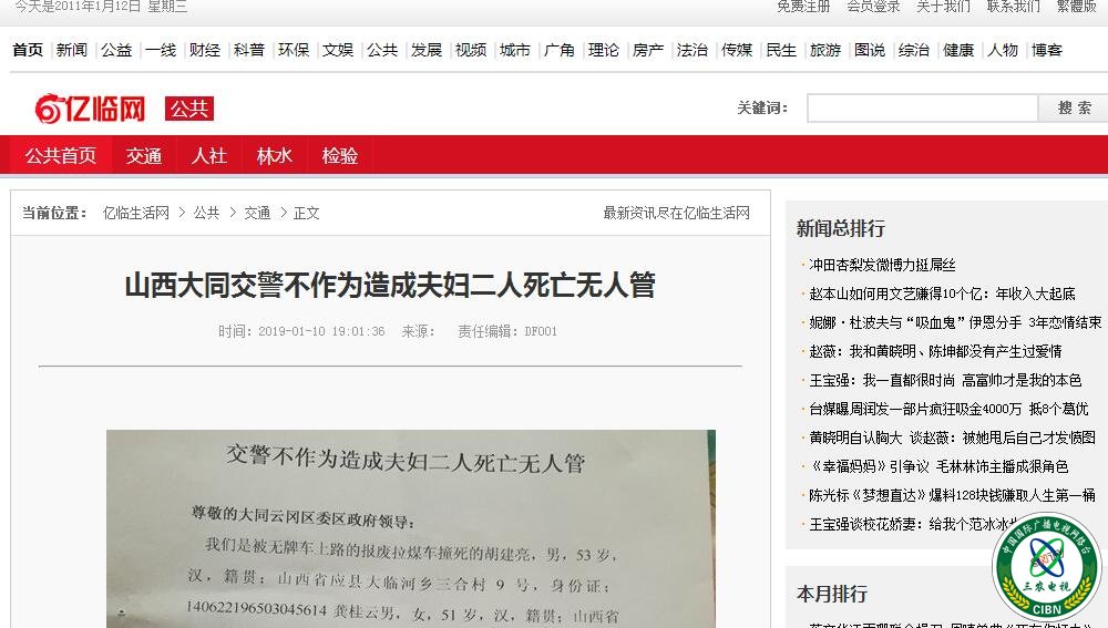 山西大同交警不作为造成夫妇二人死亡无人管(转载)