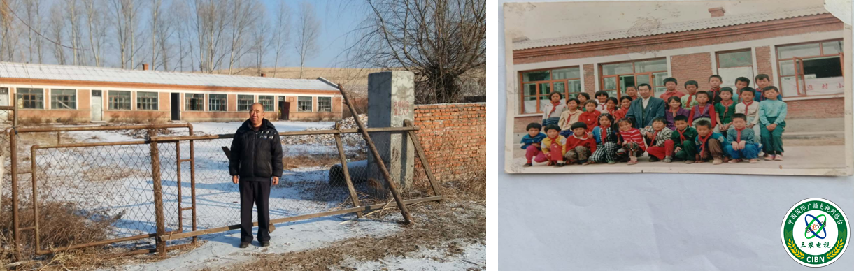 左图:李生在当年工作的前进小学大门口 右图:李生与他的学生留影
