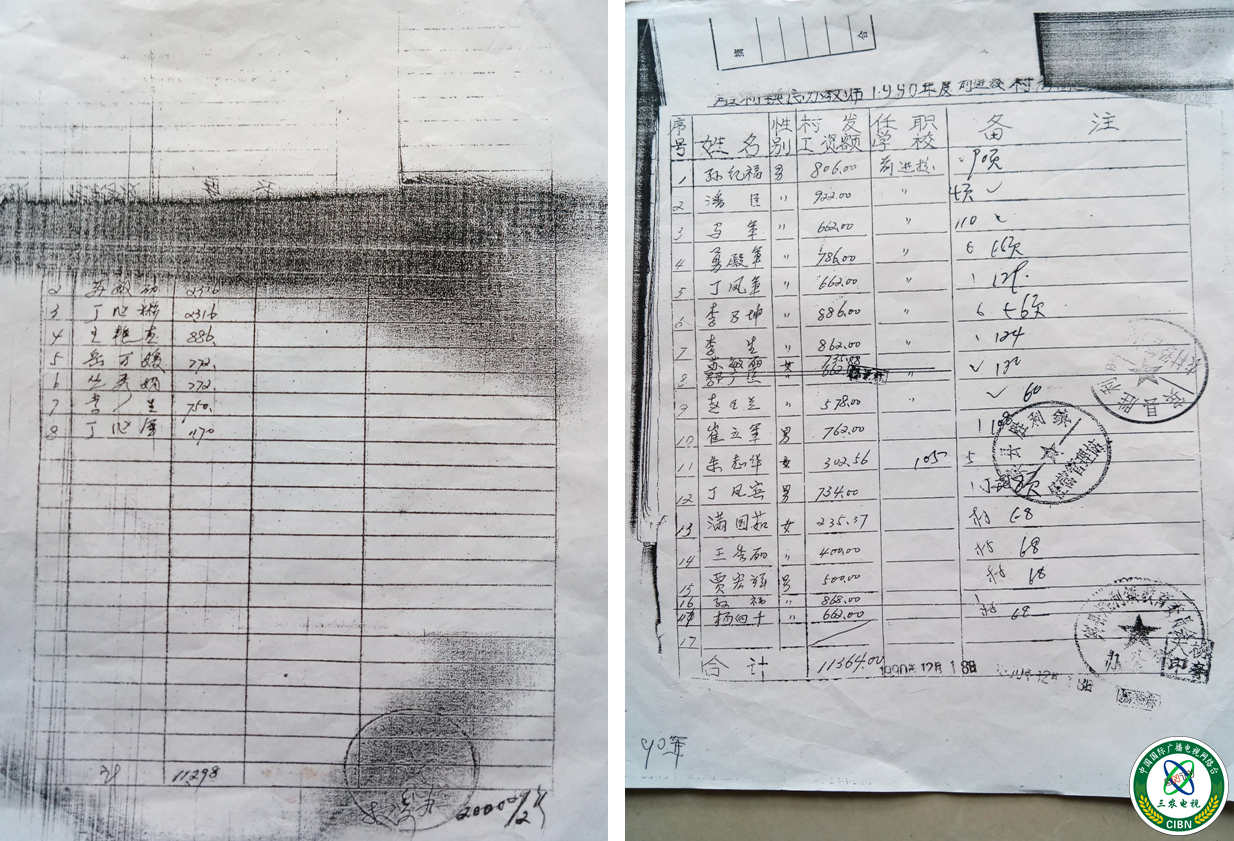 左图:2000年12月份李生工资表 右图:1990年李生的工资表