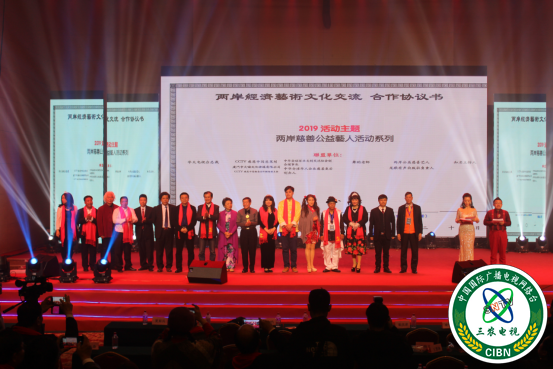 晚会现场,来自CCTV《感恩中国》书画院的执行主席张雅芳、执行副主席曲赫东、执行副主席李建明等十九位书画家现场挥毫驱墨;玄嚣派剪纸、非物质文化遗产传承人、齐派艺术第四代传承人尹浩向台湾华天电视台赠送了《合家欢》剪纸艺术作品,她们以中国文化自信的特殊元素为晚会和颁奖盛典增色添彩。
