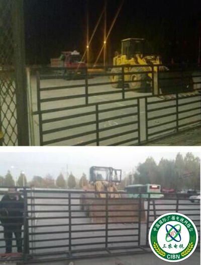这是2018年11月22日,西轵城村委会派铲车,准备强行推古轵生态游乐园的大门。