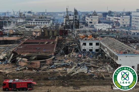 3月22日,江苏盐城响水县陈家港镇江苏天嘉宜化工有限公司爆炸核心周边一企业一片狼藉。中新社记者 泱波 摄