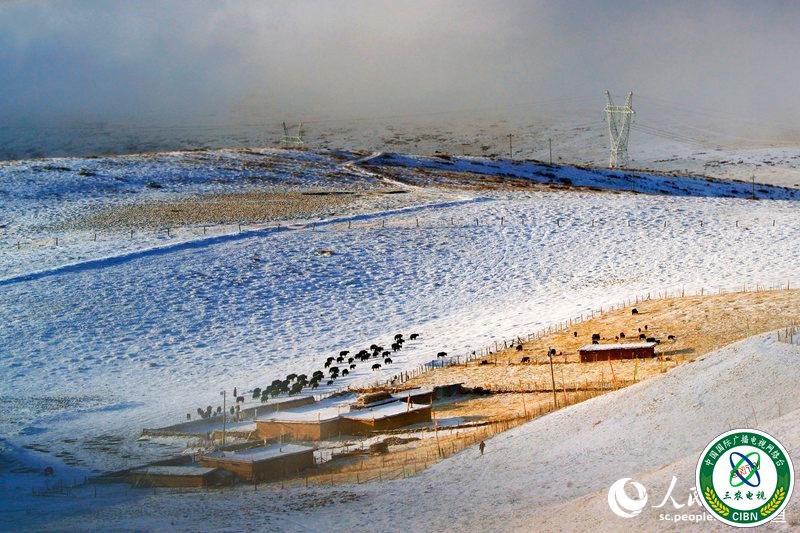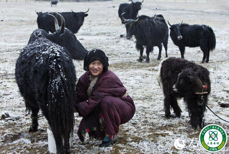 雪中挤奶姑娘。游建中 摄