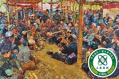 “塔吉克人的淳朴、善良令人难忘,在画下他们时,我力求让人物的笑容干净、明亮,那绝非主观美化,确是我亲见亲历。”《春归帕米尔》的作者叶华说。此作描画了少数民族年轻男女载歌载舞的喜悦场景。画面中绿色的湿地和山峦延绵起伏,营造出春意朦胧的温暖基调。画家特意用蔚蓝的天空和耸立的山峰稳定画面,与前景人物的欢快舞蹈形成动静对比,充满生活气息。