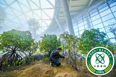 北京世园会植物馆首次在北方温室营造红树林生长环境,支持红树林以及其他热带植物的生长,还可以营造潮起潮落的效果。本报记者 潘之望摄