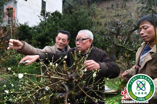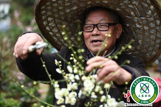 中新网歙县2月21日电 (韩苏原)徽州的二月早春悄然而至,歙县卖花渔村的红梅白梅都已经热热闹闹的开起来了。卖花渔村的花农们也开始忙碌着为各类盆景压枝、剪枝、造型。