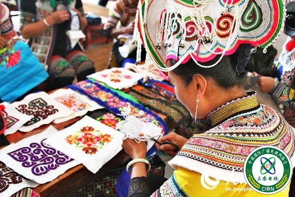 不得不提的还有刺绣。3月29日下午,在元阳县攀枝花乡猛弄刺绣农民专业合作社,“绣娘”们趁农闲时,边唱山歌,边手舞翻飞,一件件精美刺绣渐渐生成开来。