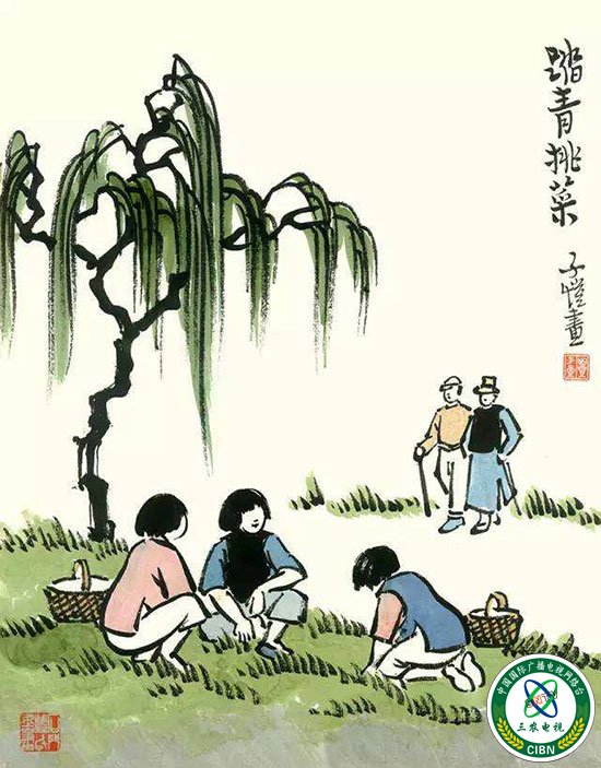 丰子恺绘画了很多“春日游、杏花吹满头”的清明踏春作品,还专门写了一篇《清明扫墓》的文章,记录自己童年记忆中“借墓游春”的欢乐。