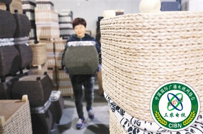 在山东省博兴县锦秋街道湾头村,一名村民在搬运草柳编工艺品。目前,在这个有1800多户村民居住的村庄,900多户开起了淘宝网店。 陈 彬摄 新华社发