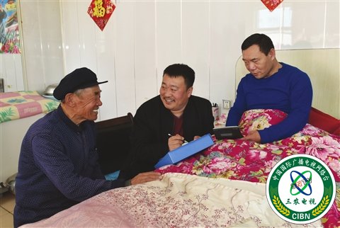 田录坐在床上,手里正拿着计算器不停地按着,张海军帮着田录将计算好的春耕备耕物质数量记到了笔记本上,而一旁站着的田录父亲田玉才,在饱经沧桑的脸上绽放出了幸福的笑容。