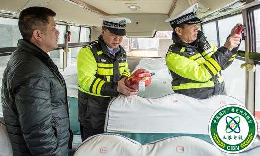 三农电视台讯:竹溪县交警在西关街校车集中点检查校车干粉灭火器、安全带。当日,交警大队召开了全县校车驾驶员交通安全培训会,县教育局分管学生交通安全领导、校车驾驶员与交警大队领导签订了安全责任书,并将校车集中到辖区西关街对车况、安全设备等进行全面安全状况检查。(农村新报通讯员 温大树潘成涛 摄)