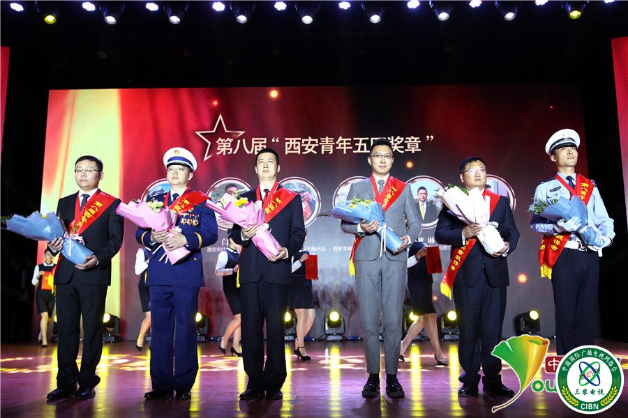 耿琳(右三)获得第八届“西安青年五四奖章”。耿琳供图