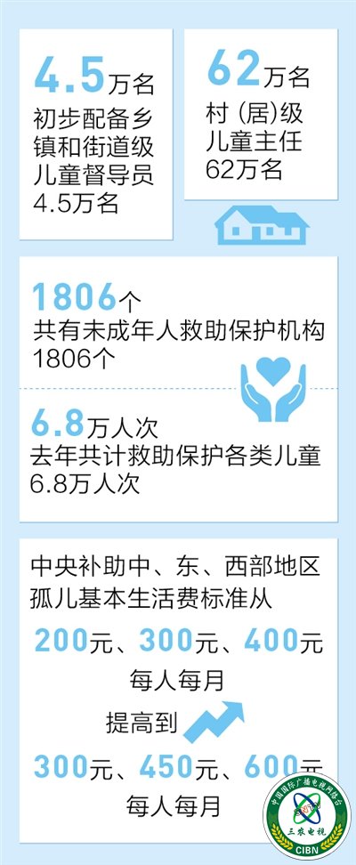 据了解,目前全国已经初步配备了乡镇和街道一级的儿童督导员4.5万名,在村(居)这一级配备了儿童主任62万名,且全部实名录入到全国儿童主任、儿童督导员信息系统中。
