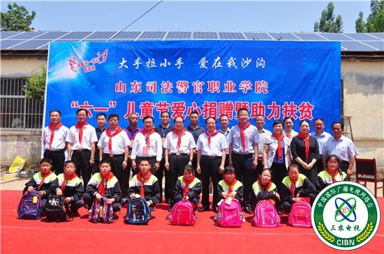 三农电视台6月1号讯(通讯员:王永笑 李静 姜友忠)5月31日,在2019年“六一”国际儿童节来临之际,为关爱帮包村儿童群体的健康成长,省司法厅驻沙沟镇“第一书记”联合山东司法警官职业学院开展了庆“六一”爱心扶贫捐赠活动。山东司法警官职业学院党委委员、副院长刘广乾,市、县、镇有关领导,省司法厅驻沙沟镇“第一书记”,部分学生及学生家长参加了活动。