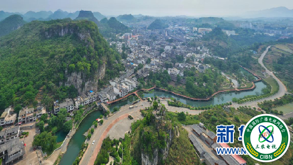 图为航拍视角下的岩脚镇一隅。新华网 付锐摄
