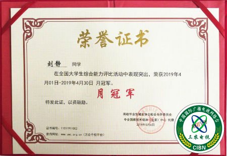 高校毕业生就业协会校企合作委员会为每月评比出的优秀大学生颁发证书和奖品。