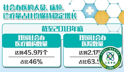 “社会办医是我国医疗服务体系的重要组成部分,是增加医疗资源有效供给,满足群众多层次多样化健康服务需求的重要力量。”国家卫生健康委副主任王贺胜说,近年来我国社会办医取得了长足进展,截至2018年底,我国社会办医疗机构数量达到45.9万个,占比46%;社会办医院数量达到2.1万个,占比63.5%。社会办医的人员、床位、诊疗量占比均保持稳定增长。