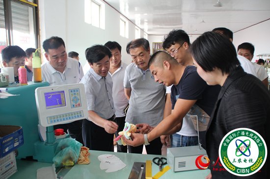图为县委书记房延生(前排左三)、县长苏雷芳(前排左四)到孙甘店镇扶贫微工厂调研脱贫工作。