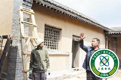图为陈春芳(右)在车谷砣村晋察冀边区造币厂旧址恢复施工现场。 通讯员 李学彦摄