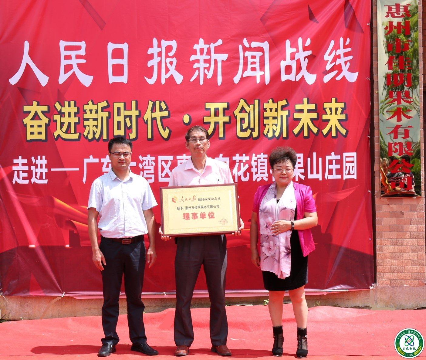 2019年6月18日,人民日报新闻战线“奋进新时代 开创新未来”走进广东大湾区惠东县白花镇花果山庄园。并授予惠州市佳明果木有限公司“人民日报新闻战线理事单位”。