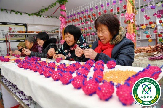 冬闲时节,河北省辛集市依托当地的特色手工坊企业,组织农村妇女从事手工艺品、生活用品等手工编织工作,利用电子商务平台将产品销往国内外,帮助农户增收。