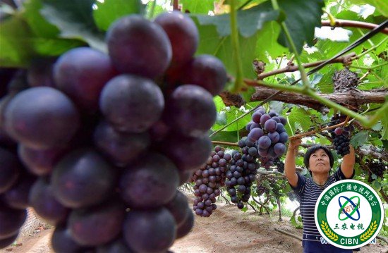 5月23日,迁安市野鸡坨镇李家峪村的农民在管理大棚葡萄。