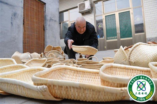 3月1日,河北省巨鹿县董坚台村村民在家中整理柳编手工艺品。