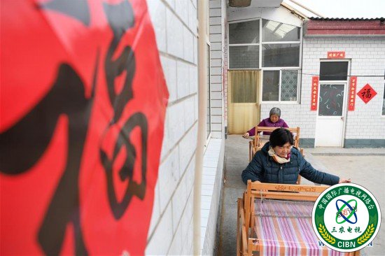 3月1日,河北省巨鹿县柳洼村村民在家中织布。