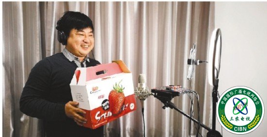 草莓种植户通过电商平台做直播。记者 徐铁英 摄