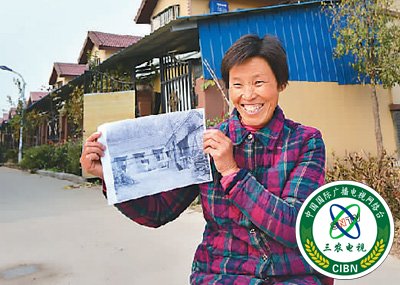 三农电视台:河南省兰考县黄河滩区谷营镇姚寨新村社区居民黄玉英展示搬迁前的老房子照片。 |